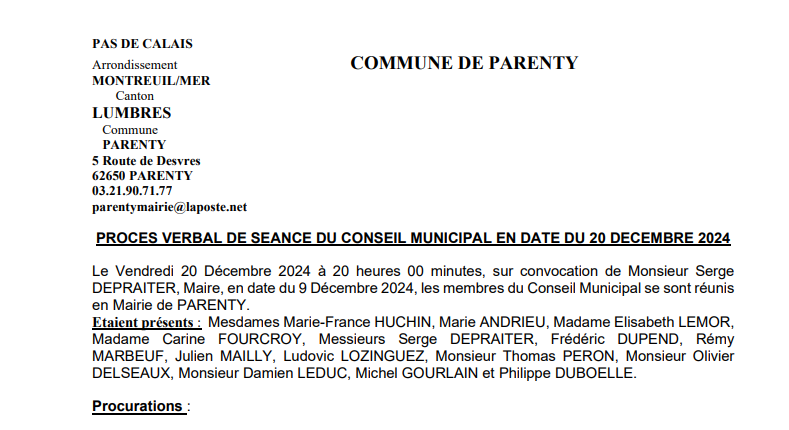 CONSEIL MUNICIPAL 20 Décembre 2024